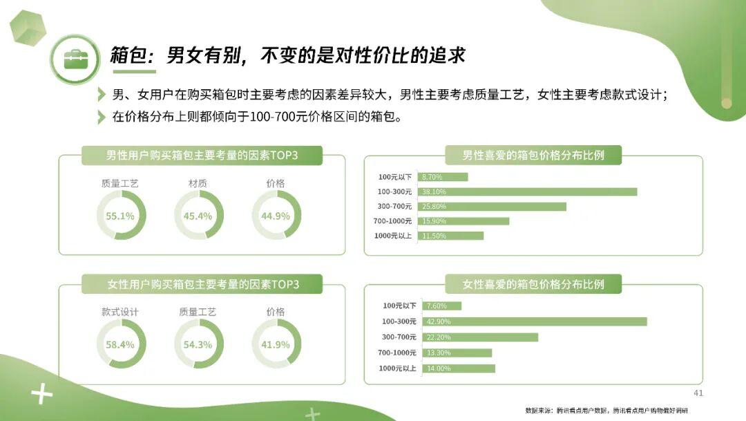 作为腾讯的信息流服务平台,腾讯看点3月日活跃用户达2.4亿,人均单日使用时长达58分钟,覆盖全网各年龄层用户,是名副其实的国民级应用。《报告》针对手机数码、家用电器、个护美妆、时尚好物、箱包五大电商品类,在腾讯看点全平台进行数据捉取和用户购物偏好调研,帮助广告主洞察全平台用户结构、用户习惯、用户喜好等。